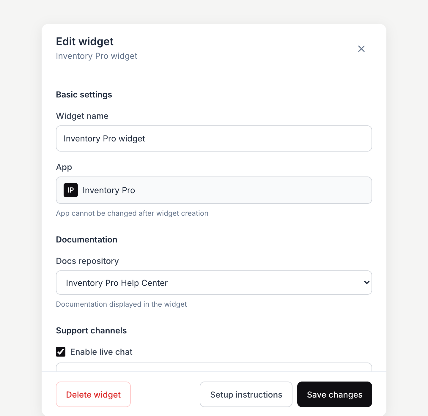 Your customers shouldn't have to leave your app to get help. The support widget embeds your documentation, AI-powered answers, and live chat directly into your product—giving customers instant answers right where they need them.